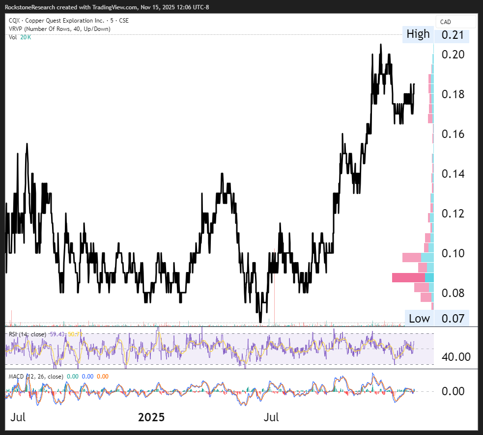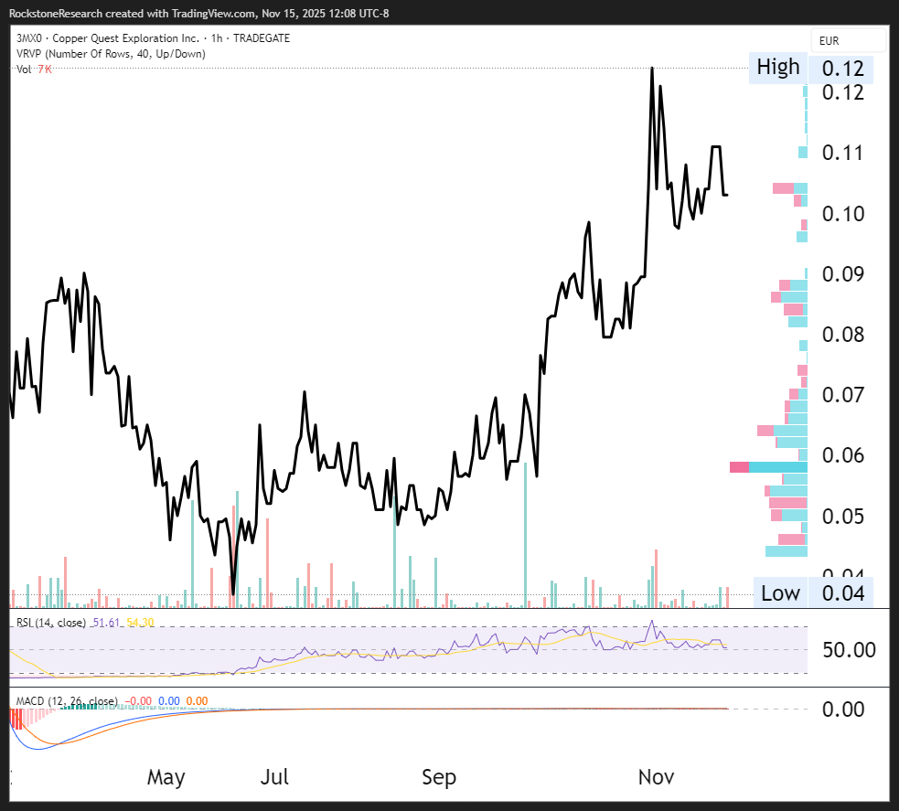 Offenlegung von Interessen und Hinweise: Nichts in diesem Bericht darf als Aufforderung zum Kauf oder Verkauf von hier genannten Wertpapieren ausgelegt werden. Rockstone, seine Eigentümer und der Autor dieses Berichts sind keine registrierten Broker-Dealer oder Finanzberater. Bevor Sie in Wertpapiere investieren, sollten Sie Ihren Finanzberater und einen registrierten Broker-Dealer konsultieren. Treffen Sie niemals eine Investitionsentscheidung ausschließlich auf Grundlage dessen, was Sie in einem Online- oder gedruckten Bericht lesen, einschließlich eines Berichts von Rockstone, insbesondere wenn es sich bei der Investition um ein kleines, wenig gehandeltes und nicht weithin bekanntes Unternehmen handelt. Der Autor dieses Berichts, Stephan Bogner, wird von der Zimtu Capital Corp. („Zimtu“), einer an der TSX Venture Exchange notierten Investmentgesellschaft, bezahlt. Ein Teil der Aufgaben des Autors bei Zimtu besteht darin, Unternehmen zu recherchieren und über jene zu berichten, in die Zimtu investiert ist. Auch wenn der Autor dieses Berichts also nicht direkt von Copper Quest Exploration Inc. („Copper Quest“) bezahlt wird, profitiert der Arbeitgeber des Autors, Zimtu Capital Corp., von Handelsvolumen und Kurssteigerungen der Aktien von Copper Quest. Copper Quest bezahlt Zimtu Capital Corp. für die Erstellung dieses Berichts und weitere Dienstleistungen. Laut Pressemitteilung vom 27. August 2025: „Copper Quest Exploration Inc. (CSE: CQX; OTCQB: IMIMF; FRA: 3MX) („Copper Quest“ oder das „Unternehmen“) freut sich bekanntzugeben, dass es eine Vereinbarung mit der Zimtu Capital Corp. (TSX.V: ZC) (FSE: ZCT1) („Zimtu“) unterzeichnet hat, wonach Zimtu Marketingdienstleistungen im Rahmen seines ZimtuADVANTAGE-Programms (https://www.zimtu.com/zimtu-advantage/) ab dem 1. September 2025 für eine anfängliche Laufzeit von 12 Monaten zu Kosten von 12.500 CAD pro Monat erbringen wird. Marketingvereinbarung: Das ZimtuADVANTAGE-Programm ist darauf ausgelegt, Chancen, Beratung, Marketing und Unterstützung bereitzustellen. Die Dienstleistungen umfassen Investorenpräsentationen, E-Mail-Marketing, Lead-Generierungskampagnen, Blogbeiträge, digitale Kampagnen, Social-Media-Management, Rockstone-Research-Berichte & -Distribution, Video-Pressemitteilungen sowie damit verbundene Marketing- und Awareness-Aktivitäten. Zimtu hat seinen Sitz in Vancouver, Suite 1450 – 789 West Pender Street, Vancouver, BC V6C 1H2. Zimtu ist erreichbar unter 604.681.1568 oder info@zimtu.com. Die Vergütung von Zimtu beinhaltet keine Wertpapiere des Unternehmens; zum Datum dieses Berichts hält Zimtu 2.633.333 Aktien des Unternehmens und 2.333.333 Warrants zum Erwerb von Stammaktien des Unternehmens.“ Der Autor hält Wertpapiere von Copper Quest und wird somit von Handelsvolumen und Kurssteigerungen der Aktie profitieren. Dies stellt zudem einen erheblichen Interessenkonflikt dar, der die Objektivität dieser Berichterstattung beeinflussen kann. Der Autor kann jederzeit ohne Ankündigung Wertpapiere von Copper Quest (oder vergleichbaren Unternehmen) kaufen oder verkaufen, was zu weiteren Interessenkonflikten führen kann. Insgesamt bestehen mehrere Interessenkonflikte. Daher dürfen die in diesem Bericht enthaltenen Informationen nicht als Finanzanalyse oder Empfehlung ausgelegt werden, sondern als Werbung. Dieser Bericht ist als werbliche Publikation zu verstehen und ersetzt keine individuelle Anlageberatung. Die Ansichten und Meinungen von Rockstone und des Autors in Bezug auf die in den Berichten vorgestellten Unternehmen sind die eigenen Ansichten des Autors und basieren auf Informationen, die er erhalten oder in der öffentlichen Domäne gefunden hat, und die als zuverlässig erachtet werden. Rockstone und der Autor haben keine unabhängige Due Diligence der erhaltenen oder in der öffentlichen Domäne gefundenen Informationen durchgeführt. Rockstone und der Autor dieses Berichts garantieren weder die Richtigkeit, Vollständigkeit oder Nützlichkeit der Inhalte dieses Berichts noch deren Eignung für einen bestimmten Zweck. Schließlich garantieren Rockstone und der Autor nicht, dass eines der in diesem Bericht genannten Unternehmen die erwartete Entwicklung nimmt, und jegliche Vergleiche mit anderen Unternehmen können ungültig sein oder keine Wirkung entfalten. Bitte lesen Sie den gesamten Haftungsausschluss sorgfältig durch. Wenn Sie nicht allen Bestimmungen des Haftungsausschlusses zustimmen, rufen Sie diese Website oder eine ihrer Seiten einschließlich dieses Berichts in Form eines PDF nicht auf. Durch die Nutzung dieser Website und/oder dieses Berichts, unabhängig davon, ob Sie den Haftungsausschluss tatsächlich lesen, gelten Sie als mit diesem einverstanden. Die bereitgestellten Informationen sind bildend und allgemeiner Natur. Daten, Tabellen, Abbildungen und Bilder, sofern nicht anders gekennzeichnet oder verlinkt, stammen von Copper Quest Exploration Inc., Tradingview, Stockwatch und aus der öffentlichen Domäne. Das Titelbild wurde von 123rf.com bezogen und lizenziert.