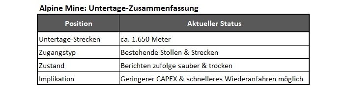 Alpine ist eine ehemals produzierende Untertage-Mine mit: