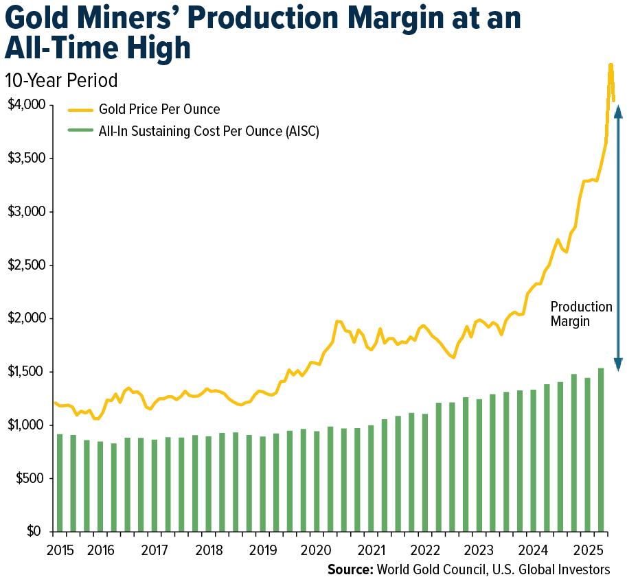 Rekordhohe Goldmargen machen das kurzfristige Produktionspotenzial von Alpine für Copper Quest wertvoller denn je – insbesondere dank des bestehenden Untertagezugangs und des oberflächennahen Haldenmaterials ("Stockpile"), das zur Bewertung bereitsteht. Während die Produktionskosten ("All-in Sustaining Costs"; AISC) in der Branche weitgehend stabil geblieben sind, ist der Goldpreis explosionsartig gestiegen – und damit war der wirtschaftliche Hebel hochgradigen Materials noch nie größer. Das leicht zugängliche Erz von Alpine bietet eine seltene Chance, diesen Margenanstieg direkt zu nutzen. (Die Grafik wurde von Rockstone angepasst, um den jüngsten Ausbruch über 4.000 USD abzubilden.)
