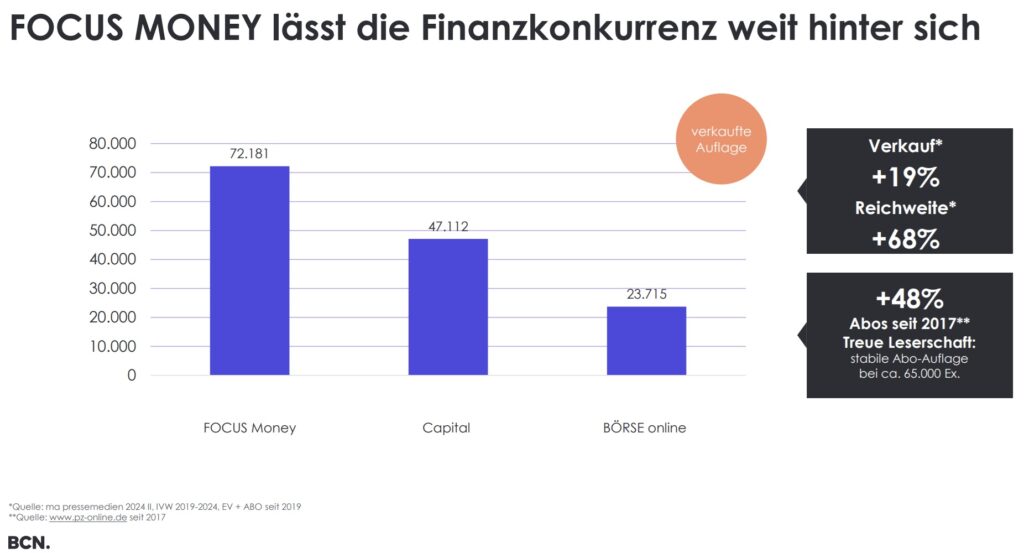 FOCUS Money ist „Deutschlands reichweitenstärkstes Finanzmagazin“ und erreicht rund 580.000 Leser pro Ausgabe (ma) bei rund 85.000 verkauften Print-Exemplaren (IVW-Stand VI/25).