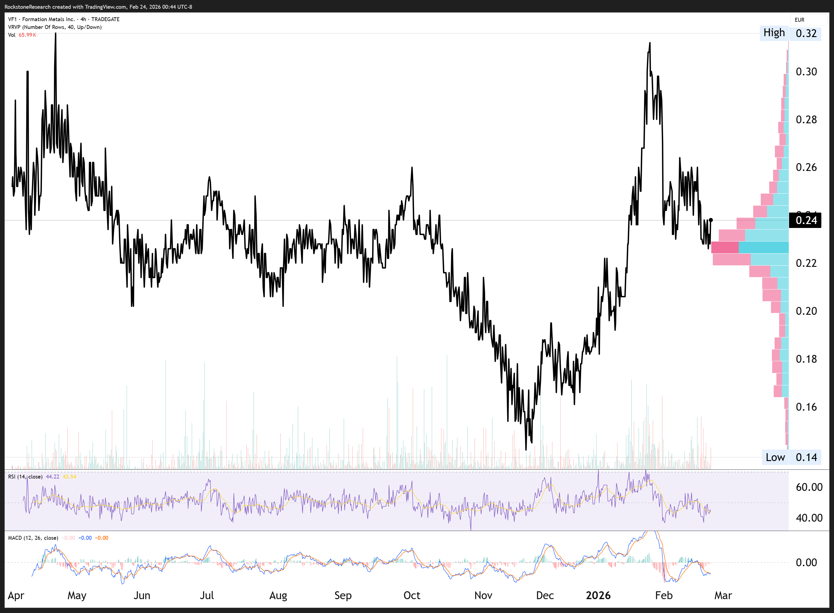 Offenlegung von Interessen und Warnhinweise: Nichts in diesem Bericht ist als Aufforderung zum Kauf oder Verkauf der genannten Wertpapiere zu verstehen. Rockstone, seine Eigentümer und der Verfasser dieses Berichts sind keine registrierten Broker-Dealer oder Finanzberater. Bevor Sie in Wertpapiere investieren, sollten Sie Ihren Finanzberater und einen registrierten Broker-Dealer konsultieren. Treffen Sie niemals eine Anlageentscheidung allein auf der Grundlage von Informationen aus einem Online- oder gedruckten Bericht, einschließlich des Berichts von Rockstone, insbesondere wenn es sich um eine Anlage in ein kleines, wenig gehandeltes und wenig bekanntes Unternehmen handelt. Der Autor dieses Berichts, Stephan Bogner, wird von Zimtu Capital Corp. („Zimtu“), einer an der TSX Venture Exchange notierten Investmentgesellschaft, bezahlt. Zu den Aufgaben des Autors bei Zimtu gehört es, Unternehmen, in die Zimtu investiert hat, zu recherchieren und darüber zu berichten. Der Autor dieses Berichts wird zwar nicht direkt von Formation Metals Inc. („FOMO“) bezahlt, aber sein Arbeitgeber Zimtu Capital Corp. profitiert vom Handelsvolumen und der Wertsteigerung der FOMO-Aktien. Der Autor besitzt außerdem Anteile an FOMO und Zimtu Capital Corp. und wird somit vom Handelsvolumen und Kursanstieg dieser Aktien profitieren. FOMO bezahlt Zimtu Capital Corp. für die Erstellung dieses Berichts und andere Dienstleistungen. FOMO hat eine Vereinbarung mit Zimtu Capital Corp. (TSX.V: ZC) (FSE: ZCT1) („Zimtu“) unterzeichnet, wonach Zimtu im Rahmen seines ZimtuADVANTAGE-Programms ab 1. August 2025 für eine anfängliche Laufzeit von 12 Monaten zu einem Preis von 12.500 Dollar pro Monat Marketingdienstleistungen erbringen wird. Das Programm ist darauf ausgelegt, Chancen, Beratung, Marketing und Unterstützung zu bieten. Zu den Dienstleistungen gehören Investorenpräsentationen, E-Mail-Marketing, Kampagnen zur Lead-Generierung, Blog-Beiträge, digitale Kampagnen, Social-Media-Management, Berichte und Vertrieb von Rockstone, Video-Pressemitteilungen und damit verbundene Marketing- und Sensibilisierungsmaßnahmen. Zimtu hat seinen Sitz in Vancouver, Suite 1450 – 789 West Pender Street, Vancouver, BC V6C 1H2. Zimtu ist unter der Telefonnummer 604.681.1568 oder unter info@zimtu.com erreichbar. Insgesamt bestehen mehrere Interessenkonflikte. Daher sollten die in diesem Bericht enthaltenen Informationen nicht als Finanzanalyse oder Empfehlung, sondern als Werbung verstanden werden. Die Ansichten und Meinungen von Rockstone und dem Autor zu den in den Berichten vorgestellten Unternehmen sind die eigenen Ansichten des Autors und basieren auf Informationen, die öffentlich zugänglich sind und als zuverlässig angesehen werden. Rockstone und der Autor haben keine unabhängige Due-Diligence-Prüfung der erhaltenen oder öffentlich zugänglichen Informationen durchgeführt. Rockstone und der Autor dieses Berichts übernehmen keine Gewähr für die Richtigkeit, Vollständigkeit oder Nützlichkeit der Inhalte dieses Berichts oder dessen Eignung für einen bestimmten Zweck. Schließlich übernehmen Rockstone und der Autor keine Gewähr dafür, dass die in diesem Bericht genannten Unternehmen die erwartete Performance erzielen, und dass Vergleiche mit anderen Unternehmen gültig sind oder sich bewahrheiten. Bitte lesen Sie den gesamten Haftungsausschluss sorgfältig durch. Wenn Sie nicht mit dem gesamten Haftungsausschluss einverstanden sind, dürfen Sie nicht auf diese Website oder eine ihrer Seiten, einschließlich dieses Berichts in Form einer PDF-Datei, zugreifen. Durch die Nutzung dieser Website und/oder dieses Berichts, unabhängig davon, ob Sie den Haftungsausschluss tatsächlich gelesen haben oder nicht, erklären Sie sich mit ihm einverstanden. Die bereitgestellten Informationen sind informativer und allgemeiner Natur. Daten, Tabellen, Zahlen und Bilder, sofern nicht anders gekennzeichnet oder verlinkt, stammen von Formation Metals Inc., Tradingview, Stockwatch und aus dem öffentlichen Bereich. Das Titelbild wurde von 123rf.com bezogen und lizenziert.