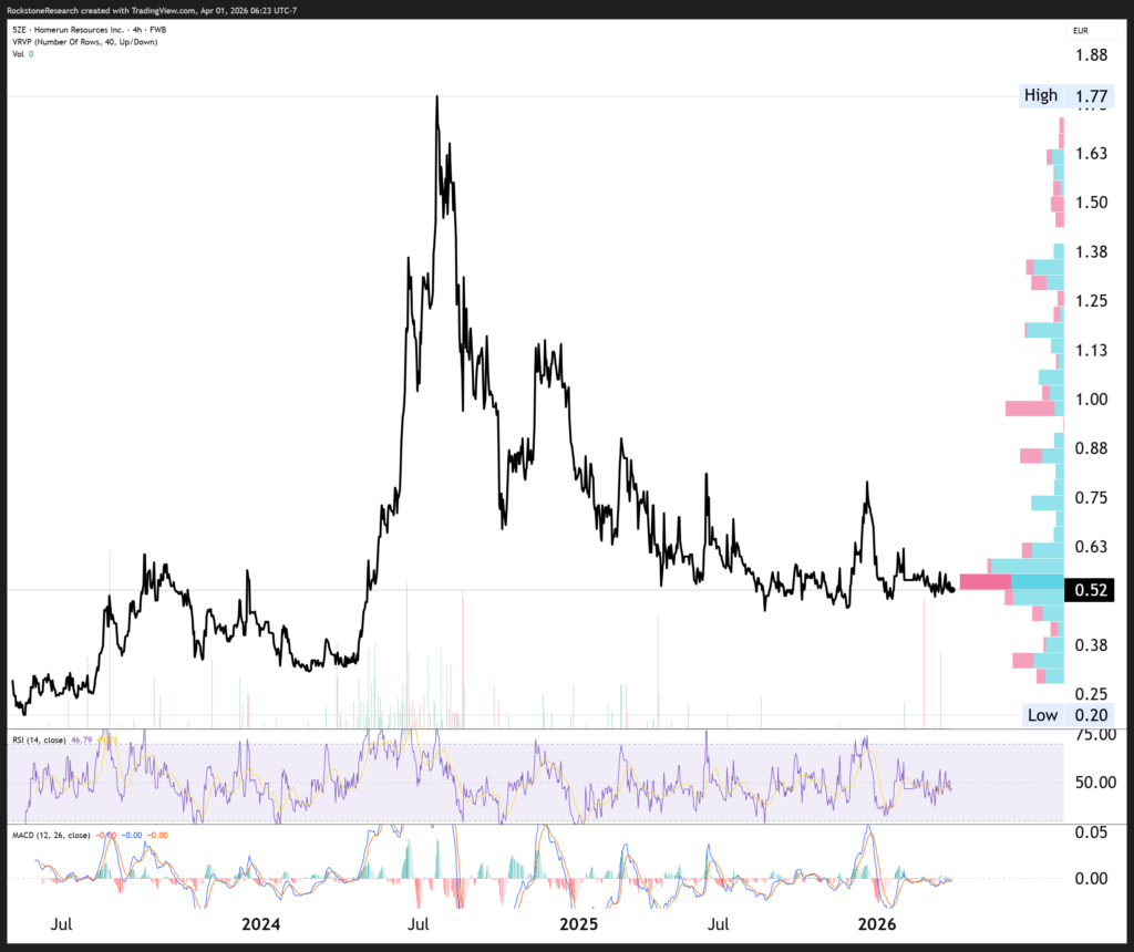Offenlegung von Interessen und rechtliche Hinweise: Nichts in diesem Bericht darf als Aufforderung zum Kauf oder Verkauf von Wertpapieren verstanden werden. Rockstone, seine Eigentümer und der Autor dieses Berichts sind keine registrierten Broker oder Finanzberater. Bevor Sie in Wertpapiere investieren, sollten Sie sich an einen lizenzierten Finanzberater oder Broker wenden. Treffen Sie niemals Investitionsentscheidungen ausschließlich auf Basis eines Berichts – insbesondere nicht bei kleinen, wenig gehandelten Unternehmen. Der Autor dieses Berichts, Stephan Bogner, wird von Homerun Resources Inc. vergütet. Am 8. September 2025 gab Homerun bekannt, dass das Unternehmen „eine Vereinbarung mit Rockstone Research über die Erbringung von Marketingdienstleistungen geschlossen“ hat. Rockstone ist ein unabhängiges Marketingunternehmen und wurde für eine erste Laufzeit von 3 Monaten mit einer Vergütung von $25.000 CAD im Voraus beauftragt. Es ist nicht vorgesehen, dass Homerun Rockstone Wertpapiere als Gegenleistung ausgibt. Der Autor hält Aktienanteile an Homerun und profitiert somit von Handelsvolumen und Kurssteigerungen der Aktie. Dies stellt einen wesentlichen Interessenkonflikt dar, der die Objektivität dieser Analyse beeinflussen kann. Der Autor kann Wertpapiere von Homerun (oder vergleichbaren Unternehmen) jederzeit kaufen oder verkaufen, was zu weiteren Interessenkonflikten führen kann. Insgesamt bestehen mehrere Interessenkonflikte. Daher sollte dieser Bericht nicht als Finanzanalyse oder Anlageempfehlung, sondern als Werbepublikation verstanden werden. Er ersetzt keine individuelle Anlageberatung. Die Ansichten und Meinungen von Rockstone und dem Autor beruhen auf öffentlich zugänglichen Informationen, die als zuverlässig erachtet, jedoch nicht unabhängig überprüft wurden. Rockstone und der Autor übernehmen keine Garantie für Richtigkeit, Vollständigkeit oder Zweckmäßigkeit der Inhalte. Ebenso wird keine Garantie dafür übernommen, dass die im Bericht genannten Unternehmen wie erwartet performen oder dass getroffene Vergleiche zu anderen Unternehmen gültig bleiben. Bitte lesen Sie den gesamten Haftungsausschluss sorgfältig. Wenn Sie mit dessen Bedingungen nicht einverstanden sind, greifen Sie nicht auf diese Website oder diesen Bericht zu. Durch die Nutzung dieser Inhalte gilt der Haftungsausschluss als akzeptiert – unabhängig davon, ob Sie ihn vollständig gelesen haben oder nicht. Die bereitgestellten Informationen dienen ausschließlich Bildungs- und Informationszwecken. Daten, Tabellen, Abbildungen und Fotos stammen, sofern nicht anders angegeben oder verlinkt, von Stockwatch.com, Tradingview.com, Homerun Resources Inc. und öffentlich zugänglichen Quellen. Das Titelbild wurde von Shutterstock.com bezogen und lizenziert.