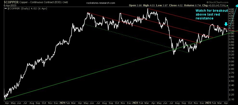 “Trafigura ist nach eigenen Angaben weiterhin bestrebt, seine Präsenz auf den schnell wachsenden Märkten für Batteriemetalle auszubauen, setzt aber auch verstärkt auf Basismetalle und sieht Kupfer und Zink als die Rohstoffe an, die aufgrund der geringen Lagerbestände die größten Preissprünge erleben könnten. Die Kupferpreise werden in den nächsten 12 Monaten wahrscheinlich ein Rekordhoch erreichen, so die jüngste Prognose von Trafigura, die sich auf den Aufschwung der chinesischen Wirtschaft und das knappe Angebot beruft.“ (Oilprice.com am 5. April 2023)