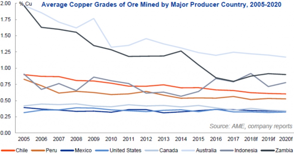 Sinkende Gehalte, steigende Nachfrage: Neue Minen in Planung? Nach Angaben der Internationalen Energieagentur sind die durchschnittlichen Kupfererzgehalte in Chile in den letzten 15 Jahren um 30% gesunken. Da in den chilenischen Minen mehr als ein Viertel des weltweiten Kupfers gefördert wird, könnten diese sinkenden Erzgehalte Anlass zur Sorge sein – vor allem, wenn sich auf dem Markt für raffiniertes Kupfer ein Defizit abzeichnet. Neue Kupferminenprojekte werden immer wertvoller, und es wäre nicht überraschend, wenn neue Namen auf der Liste der größten Kupferminen auftauchen würden.