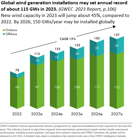 Eine 3-MW-Windturbine kann bis zu 4,7 t Kupfer enthalten, wobei 53% dieses Bedarfs auf die Kabel und Leitungen, 24% auf die Turbinen-/Stromerzeugungskomponenten, 4% auf Transformatoren und 19% auf Turbinentransformatoren entfallen. Offshore-Windkraftanlagen benötigen ca. 9,5 t Kupfer pro MW. Der größte Teil des Kupferverbrauchs entfällt auf die Verkabelung der Offshore-Windparks. Onshore-Windparks verbrauchen ca. 3,5 t Kupfer pro MW. (Quelle)
