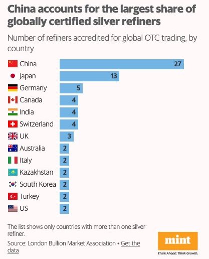 Genau an dieser Stelle kommt Chinas wahre Stärke ins Spiel. China kontrolliert, je nach Segment, einen erheblichen Teil der globalen Silberraffination und Weiterverarbeitung. Das betrifft insbesondere hochreines Silber mit Feinheiten von 99,99% und mehr, Silberpulver und -pasten für die Photovoltaik- und Elektronikindustrie sowie das Recycling von Elektronik- und Industrieschrott.