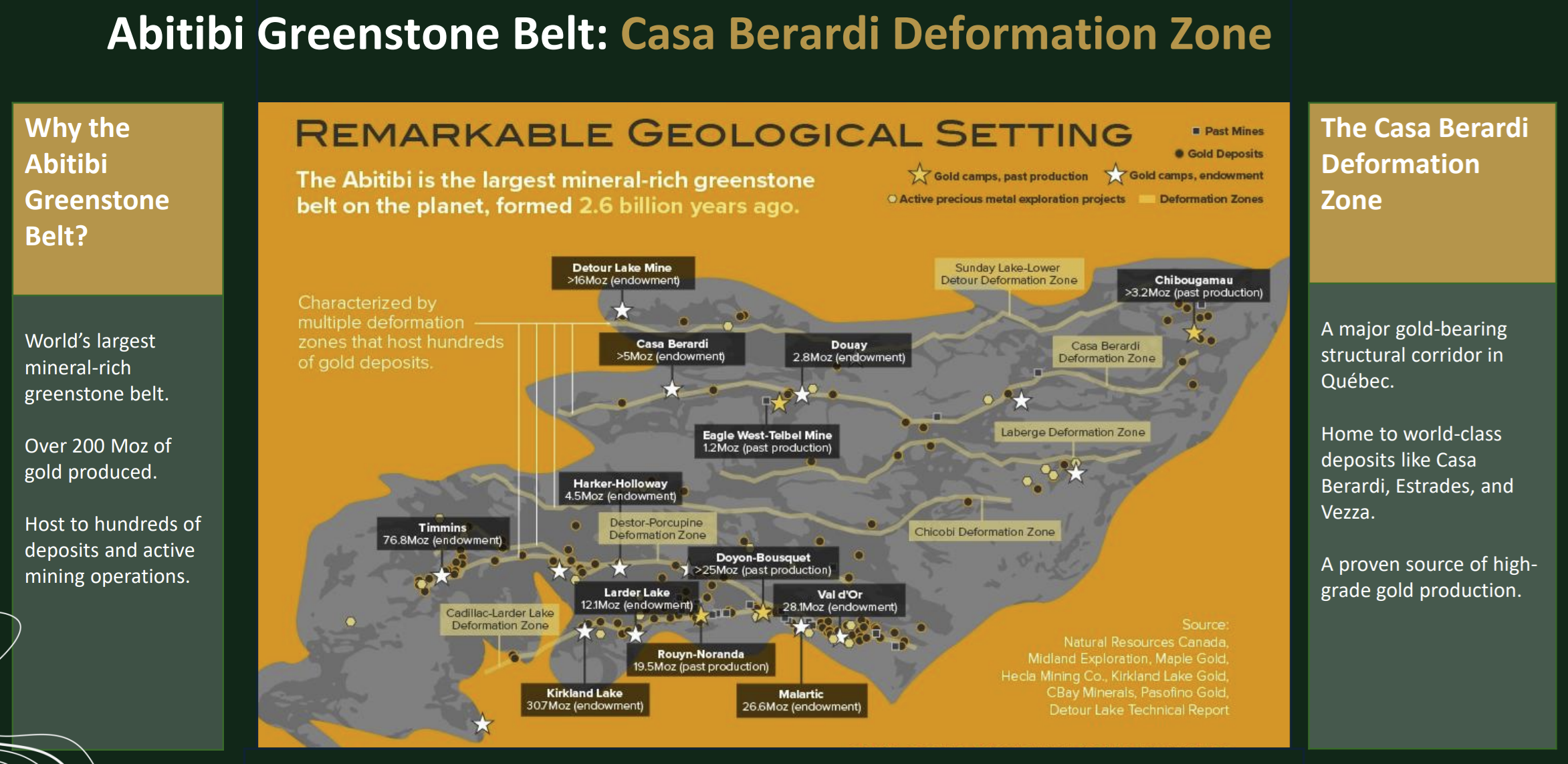 Der Abitibi-Grünsteingürtel und Québec insgesamt zählen zu den weltweit etabliertesten Regionen für Goldakquisitionen. Über Jahrzehnte hinweg haben große Produzenten wiederholt Projekte im Abitibi übernommen, sobald Größe und Kontinuität nachgewiesen waren, häufig zum Zeitpunkt oder kurz nach der ersten bzw. einer maßgeblichen Ressourcenschätzung.