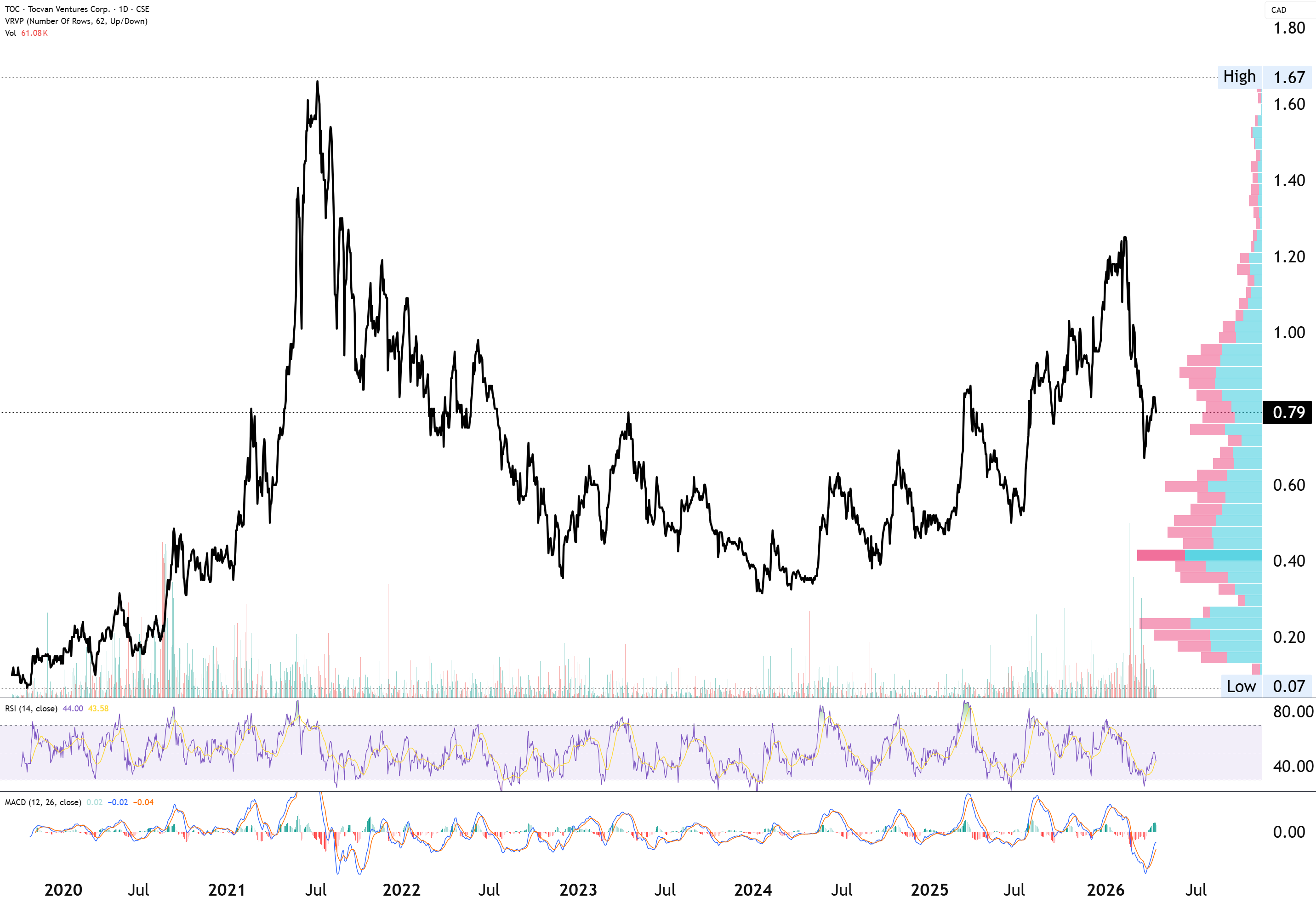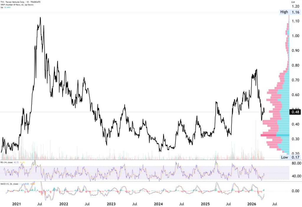 Offenlegung von Interessen und rechtliche Hinweise: Nichts in diesem Bericht ist als Aufforderung zum Kauf oder Verkauf von Wertpapieren auszulegen. Rockstone, seine Eigentümer und der Autor dieses Berichts sind keine registrierten Broker-Dealer oder Finanzberater. Bevor Sie in Wertpapiere investieren, sollten Sie stets Ihren Finanzberater und einen registrierten Broker-Dealer konsultieren. Treffen Sie niemals eine Investitionsentscheidung ausschließlich auf Grundlage von Online- oder Druckberichten, einschließlich Berichten von Rockstone – insbesondere, wenn es sich um kleine, wenig gehandelte Unternehmen handelt. Der Autor dieses Berichts, Stephan Bogner, erhielt von Tocvan Ventures Corp. eine Vergütung in Höhe von 19.000 CAD für einen Zeitraum von 3 Monaten. Zudem hält er Wertpapiere von Tocvan und wird daher auch von einem Handelsvolumen- und Kursanstieg profitieren. Dies stellt einen erheblichen Interessenkonflikt dar, der die Objektivität dieser Berichterstattung beeinflussen kann. Der Autor kann die Wertpapiere jederzeit ohne Ankündigung handeln; dadurch können weitere Interessenkonflikte entstehen. Dieser Bericht ist als werbliche Veröffentlichung zu verstehen und ersetzt keine individuelle Anlageberatung. Alle Angaben entsprechen dem Stand zum Zeitpunkt der Veröffentlichung und können sich ohne Vorankündigung ändern. Eine Haftung für finanzielle Verluste, die durch Investitionen aufgrund dieses Berichts entstehen, ist ausgeschlossen. Die Ansichten von Rockstone und des Autors in Bezug auf die in den Berichten vorgestellten Unternehmen spiegeln ausschließlich die eigenen Einschätzungen wider und basieren auf Informationen aus öffentlichen Quellen, die als zuverlässig gelten. Rockstone und der Autor haben keine unabhängige Due-Diligence-Prüfung vorgenommen. Weder Rockstone noch der Autor garantieren die Genauigkeit, Vollständigkeit oder Nützlichkeit des Inhalts, noch dessen Eignung für bestimmte Zwecke. Ebenso gibt es keine Garantie, dass die erwähnten Unternehmen sich wie erwartet entwickeln oder dass vorgenommene Vergleiche mit anderen Unternehmen zutreffen. Bitte lesen Sie den vollständigen Disclaimer sorgfältig. Sollten Sie damit nicht einverstanden sein, nutzen Sie weder diese Website noch den Bericht. Durch die Nutzung der Website oder dieses Berichts erklären Sie sich mit dem Disclaimer einverstanden, unabhängig davon, ob Sie ihn vollständig gelesen haben. Die bereitgestellten Informationen sind allgemeiner und bildender Natur. Daten, Tabellen, Abbildungen und Bilder, sofern nicht anders gekennzeichnet oder verlinkt, stammen von Tradingview.com, Stockwatch.com, Tocvan Ventures Corp. und öffentlich zugänglichen Quellen.