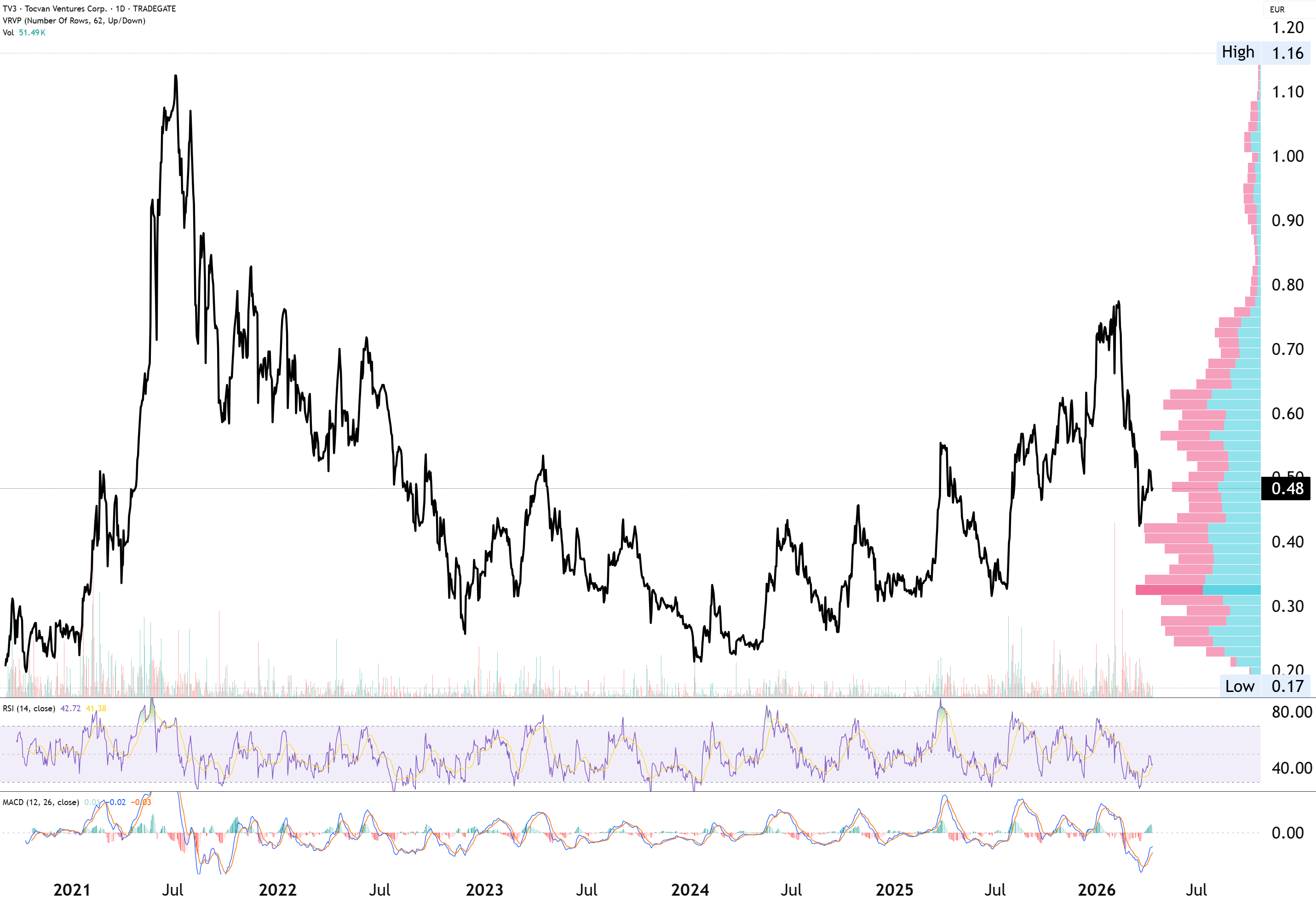Auch das laufende Bohrprogramm entwickelt sich zunehmend zu einem zentralen Kurstreiber. Bereits über 3.000 m wurden abgeschlossen, während aktuell die Laborergebnisse von 9 Bohrlöchern ausstehen. Damit steht Tocvan vor einer Phase verdichteten Newsflows, die das Potenzial hat, die Aufmerksamkeit des Marktes deutlich zu erhöhen.