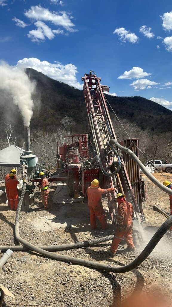 Aktive Bohrarbeiten vor Ort: Einblick in die laufenden Bohrarbeiten im South Block. Das Team arbeitet mit einem Großbohrgerät an der Erweiterung der mineralisierten Zonen.