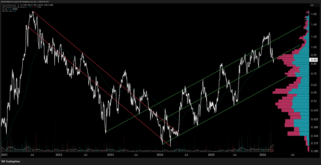 Offenlegung von Interessen und rechtliche Hinweise: Nichts in diesem Bericht ist als Aufforderung zum Kauf oder Verkauf von Wertpapieren auszulegen. Rockstone, seine Eigentümer und der Autor dieses Berichts sind keine registrierten Broker-Dealer oder Finanzberater. Bevor Sie in Wertpapiere investieren, sollten Sie stets Ihren Finanzberater und einen registrierten Broker-Dealer konsultieren. Treffen Sie niemals eine Investitionsentscheidung ausschließlich auf Grundlage von Online- oder Druckberichten, einschließlich Berichten von Rockstone – insbesondere, wenn es sich um kleine, wenig gehandelte Unternehmen handelt. Der Autor dieses Berichts, Stephan Bogner, erhielt von Tocvan Ventures Corp. eine Vergütung in Höhe von 19.000 CAD für einen Zeitraum von 3 Monaten. Zudem hält er Wertpapiere von Tocvan und wird daher auch von einem Handelsvolumen- und Kursanstieg profitieren. Dies stellt einen erheblichen Interessenkonflikt dar, der die Objektivität dieser Berichterstattung beeinflussen kann. Der Autor kann die Wertpapiere jederzeit ohne Ankündigung handeln; dadurch können weitere Interessenkonflikte entstehen. Dieser Bericht ist als werbliche Veröffentlichung zu verstehen und ersetzt keine individuelle Anlageberatung. Alle Angaben entsprechen dem Stand zum Zeitpunkt der Veröffentlichung und können sich ohne Vorankündigung ändern. Eine Haftung für finanzielle Verluste, die durch Investitionen aufgrund dieses Berichts entstehen, ist ausgeschlossen. Die Ansichten von Rockstone und des Autors in Bezug auf die in den Berichten vorgestellten Unternehmen spiegeln ausschließlich die eigenen Einschätzungen wider und basieren auf Informationen aus öffentlichen Quellen, die als zuverlässig gelten. Rockstone und der Autor haben keine unabhängige Due-Diligence-Prüfung vorgenommen. Weder Rockstone noch der Autor garantieren die Genauigkeit, Vollständigkeit oder Nützlichkeit des Inhalts, noch dessen Eignung für bestimmte Zwecke. Ebenso gibt es keine Garantie, dass die erwähnten Unternehmen sich wie erwartet entwickeln oder dass vorgenommene Vergleiche mit anderen Unternehmen zutreffen. Bitte lesen Sie den vollständigen Disclaimer sorgfältig. Sollten Sie damit nicht einverstanden sein, nutzen Sie weder diese Website noch den Bericht. Durch die Nutzung der Website oder dieses Berichts erklären Sie sich mit dem Disclaimer einverstanden, unabhängig davon, ob Sie ihn vollständig gelesen haben. Die bereitgestellten Informationen sind allgemeiner und bildender Natur. Daten, Tabellen, Abbildungen und Bilder, sofern nicht anders gekennzeichnet oder verlinkt, stammen von Tradingview.com, Stockwatch.com, Tocvan Ventures Corp. und öffentlich zugänglichen Quellen. Das Titelbild von Darin Wagner stammt von einem YouTube-Video.