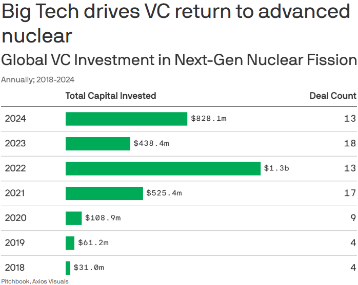 - April 2024: Equinix (Colocation-Rechenzentrum-REIT) schließt mit Oklo einen Vertrag über 500 MWe Kernenergie ab.