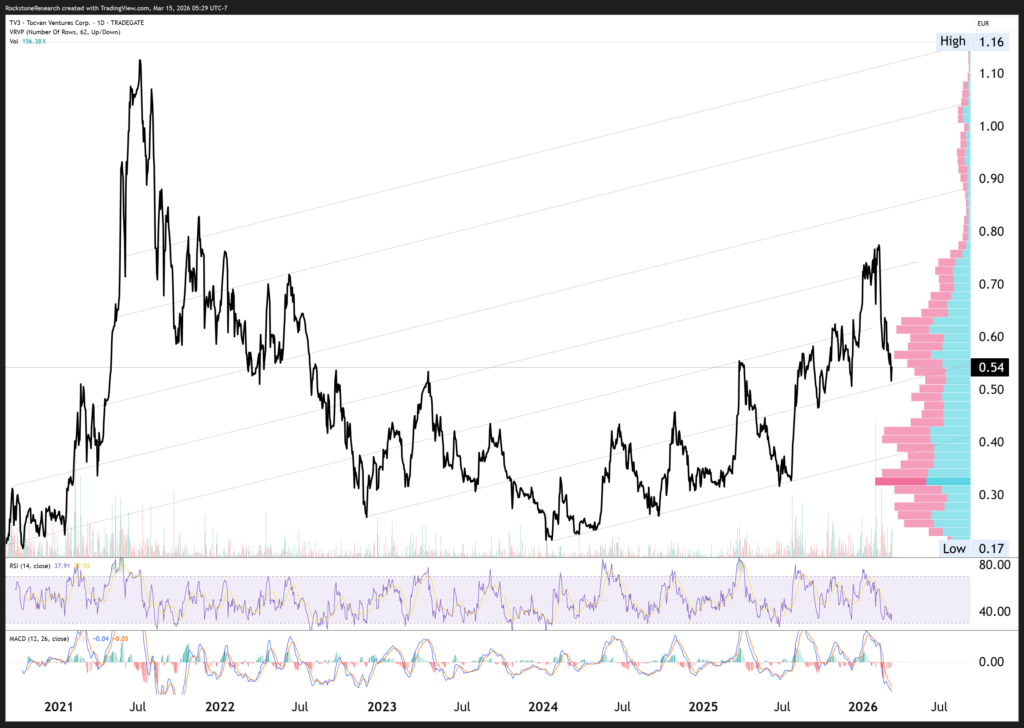 Offenlegung von Interessen und rechtliche Hinweise: Nichts in diesem Bericht ist als Aufforderung zum Kauf oder Verkauf von Wertpapieren auszulegen. Rockstone, seine Eigentümer und der Autor dieses Berichts sind keine registrierten Broker-Dealer oder Finanzberater. Bevor Sie in Wertpapiere investieren, sollten Sie stets Ihren Finanzberater und einen registrierten Broker-Dealer konsultieren. Treffen Sie niemals eine Investitionsentscheidung ausschließlich auf Grundlage von Online- oder Druckberichten, einschließlich Berichten von Rockstone – insbesondere, wenn es sich um kleine, wenig gehandelte Unternehmen handelt. Der Autor dieses Berichts, Stephan Bogner, erhielt von Tocvan Ventures Corp. eine Vergütung in Höhe von 19.000 CAD für einen Zeitraum von 3 Monaten. Zudem hält er Wertpapiere von Tocvan und wird daher auch von einem Handelsvolumen- und Kursanstieg profitieren. Dies stellt einen erheblichen Interessenkonflikt dar, der die Objektivität dieser Berichterstattung beeinflussen kann. Der Autor kann die Wertpapiere jederzeit ohne Ankündigung handeln; dadurch können weitere Interessenkonflikte entstehen. Dieser Bericht ist als werbliche Veröffentlichung zu verstehen und ersetzt keine individuelle Anlageberatung. Alle Angaben entsprechen dem Stand zum Zeitpunkt der Veröffentlichung und können sich ohne Vorankündigung ändern. Eine Haftung für finanzielle Verluste, die durch Investitionen aufgrund dieses Berichts entstehen, ist ausgeschlossen. Die Ansichten von Rockstone und des Autors in Bezug auf die in den Berichten vorgestellten Unternehmen spiegeln ausschließlich die eigenen Einschätzungen wider und basieren auf Informationen aus öffentlichen Quellen, die als zuverlässig gelten. Rockstone und der Autor haben keine unabhängige Due-Diligence-Prüfung vorgenommen. Weder Rockstone noch der Autor garantieren die Genauigkeit, Vollständigkeit oder Nützlichkeit des Inhalts, noch dessen Eignung für bestimmte Zwecke. Ebenso gibt es keine Garantie, dass die erwähnten Unternehmen sich wie erwartet entwickeln oder dass vorgenommene Vergleiche mit anderen Unternehmen zutreffen. Bitte lesen Sie den vollständigen Disclaimer sorgfältig. Sollten Sie damit nicht einverstanden sein, nutzen Sie weder diese Website noch den Bericht. Durch die Nutzung der Website oder dieses Berichts erklären Sie sich mit dem Disclaimer einverstanden, unabhängig davon, ob Sie ihn vollständig gelesen haben. Die bereitgestellten Informationen sind allgemeiner und bildender Natur. Daten, Tabellen, Abbildungen und Bilder, sofern nicht anders gekennzeichnet oder verlinkt, stammen von Tradingview.com, Stockwatch.com, Tocvan Ventures Corp. und öffentlich zugänglichen Quellen. Das Titelbild stammt von VRIFY.