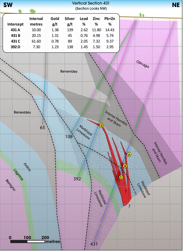Im Januar 2009 wurden weitere Bohrergebnisse veröffentlicht: 2,72 m @ 462 g/t Silber, 13,62% Zink und 10,06% Blei (nach 485 m Bohrlänge)